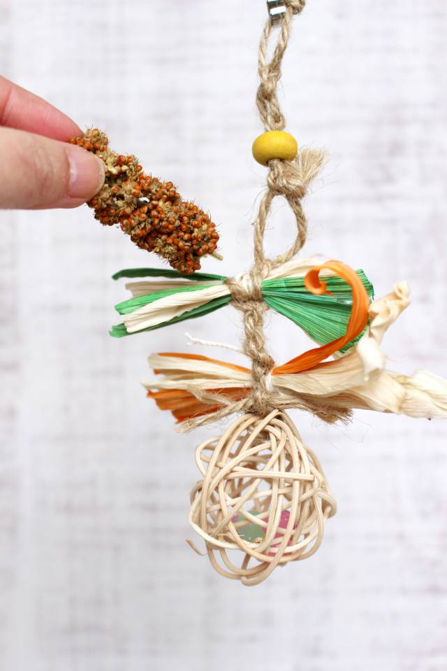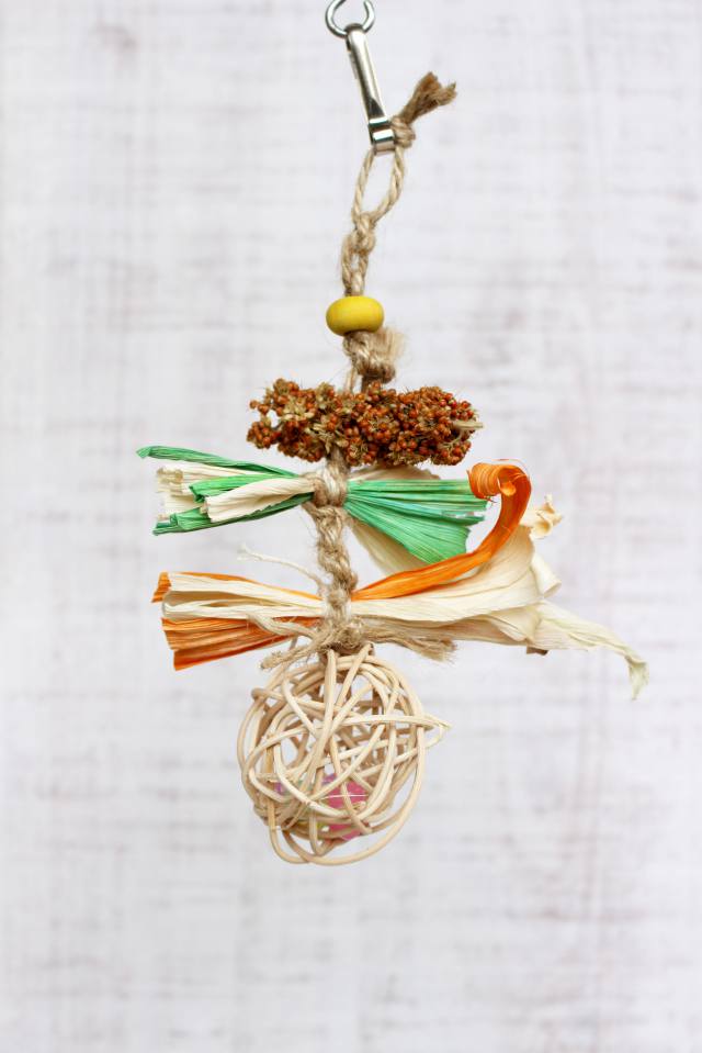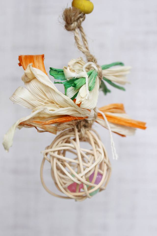 鳥さんが大好きなとうもろこし・・の「皮」を使ったおもちゃです。