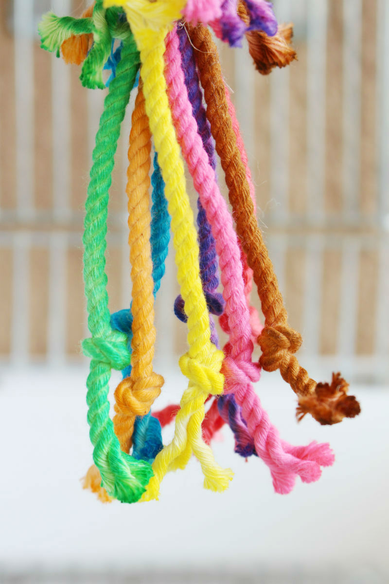 ぶらさげる麻紐は、おもちゃ上部から約20cmほど取り置き、