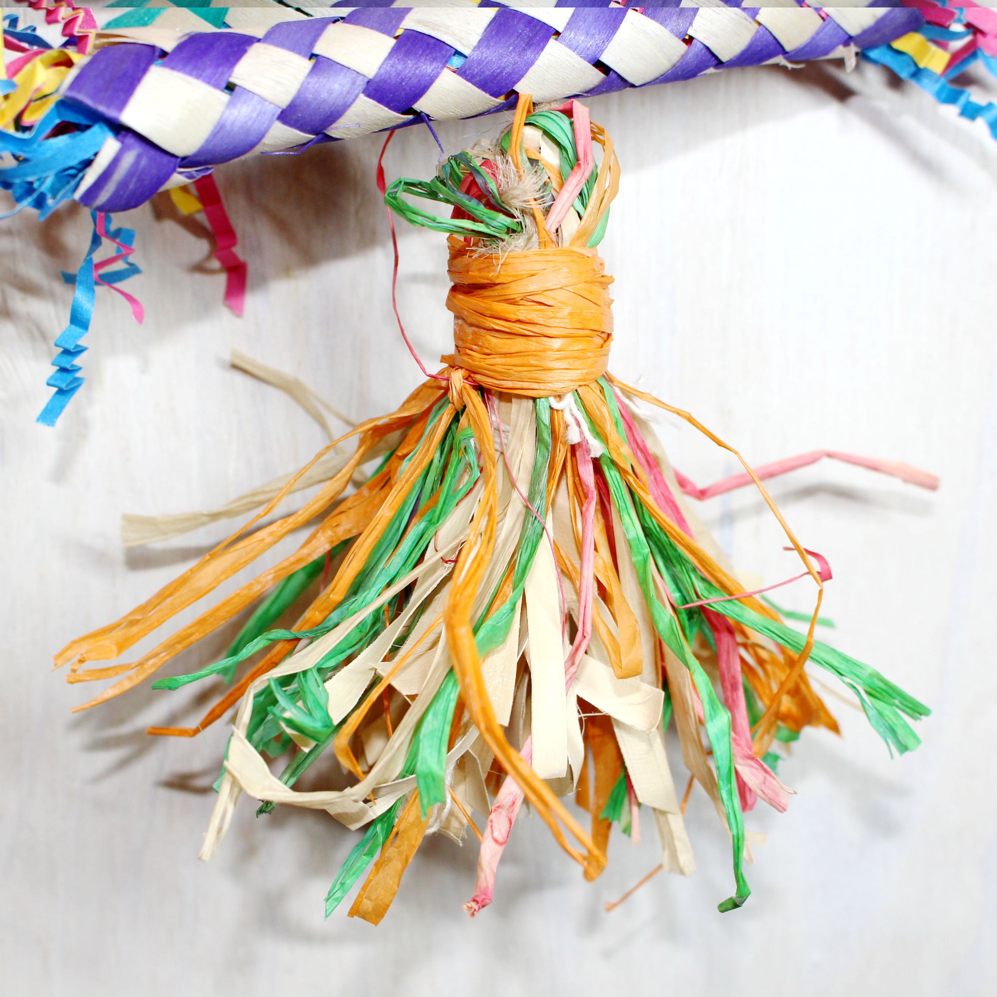また、下側は2種類の天然ヤシの葉を染めて作ったカラフルポンポン♪