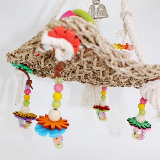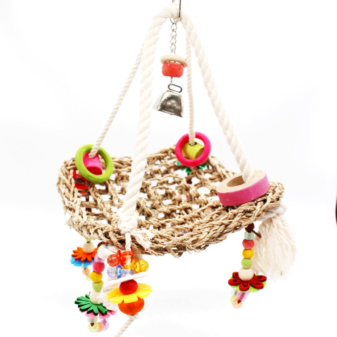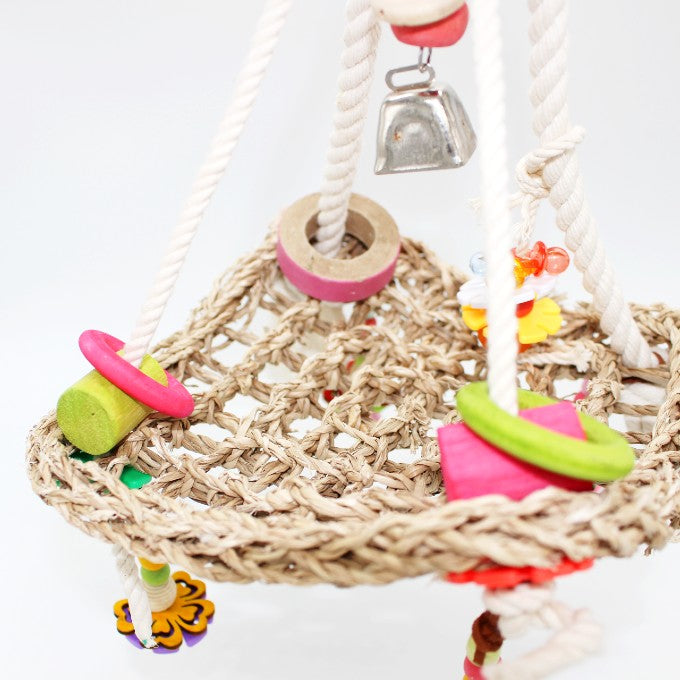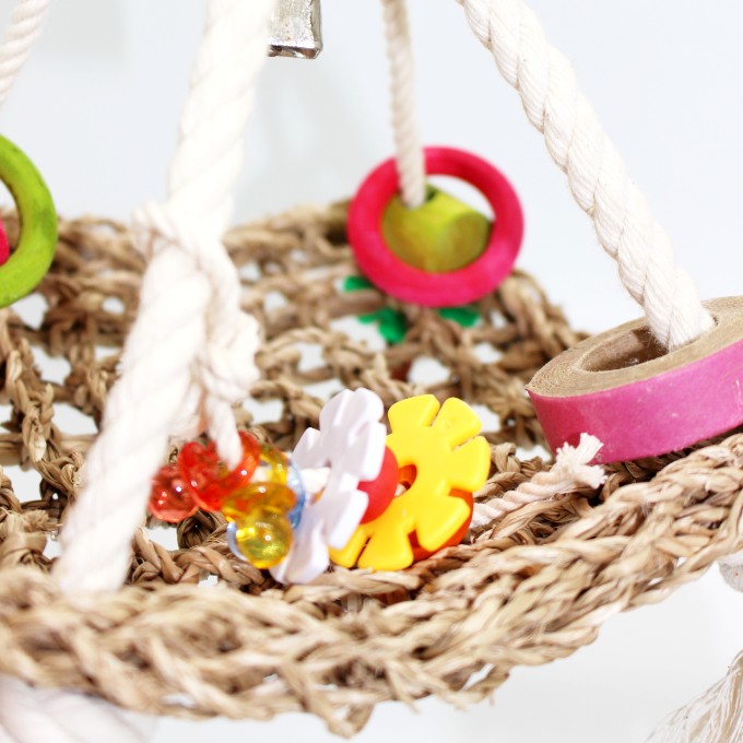 約18cm平方の天然素材でできた、ハンモック型ブランコ。