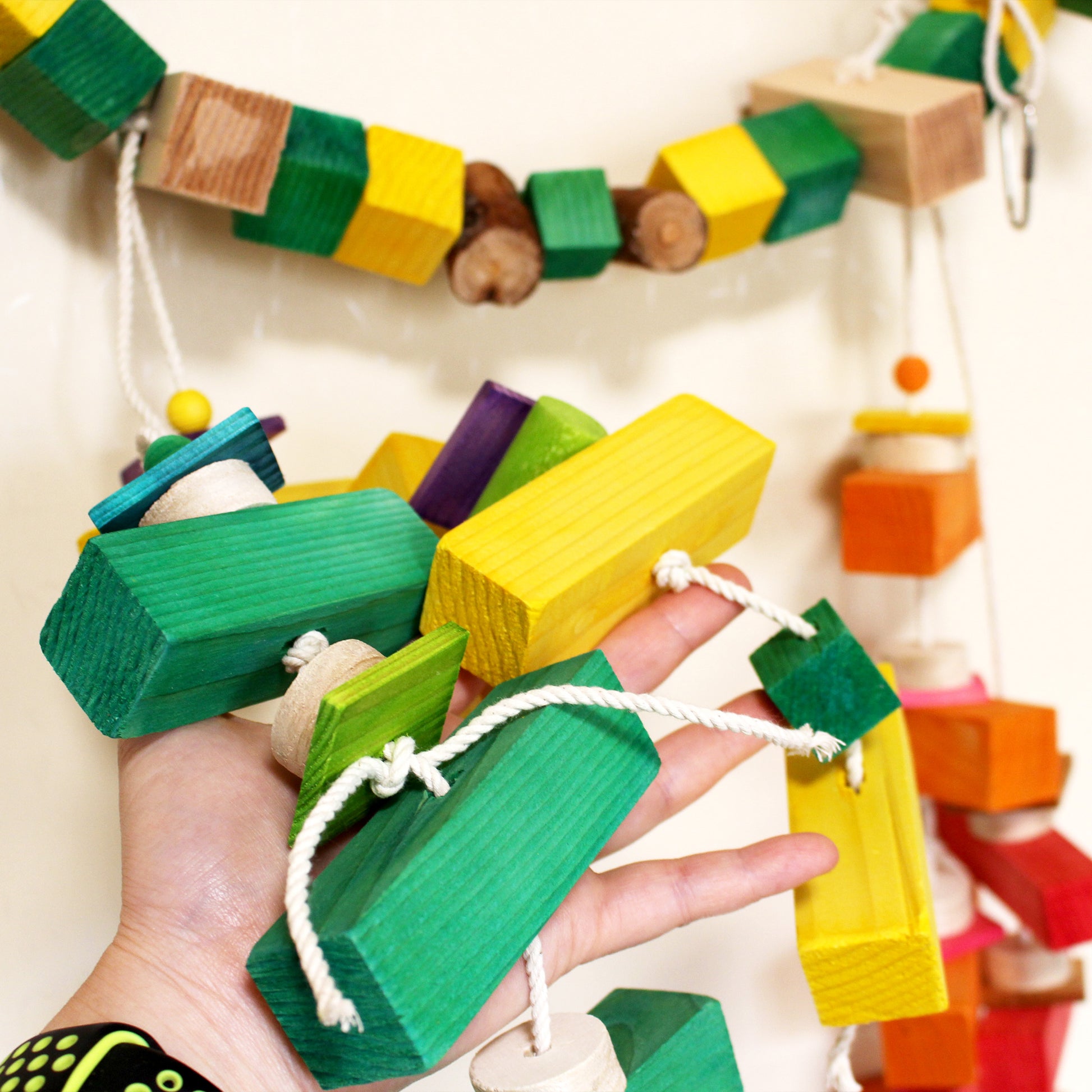 こちらのおもちゃは、コンゴウインコさんと暮らすユーザーさんの協力のもと製作し施策を重ねたのち完成いたしました。