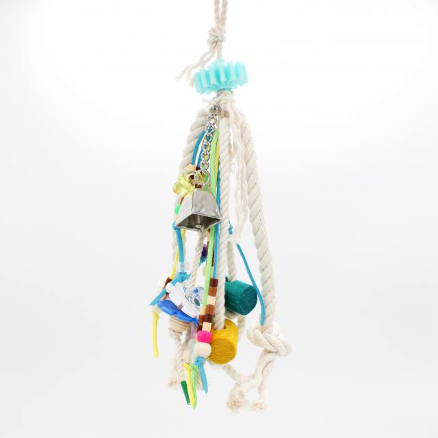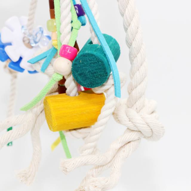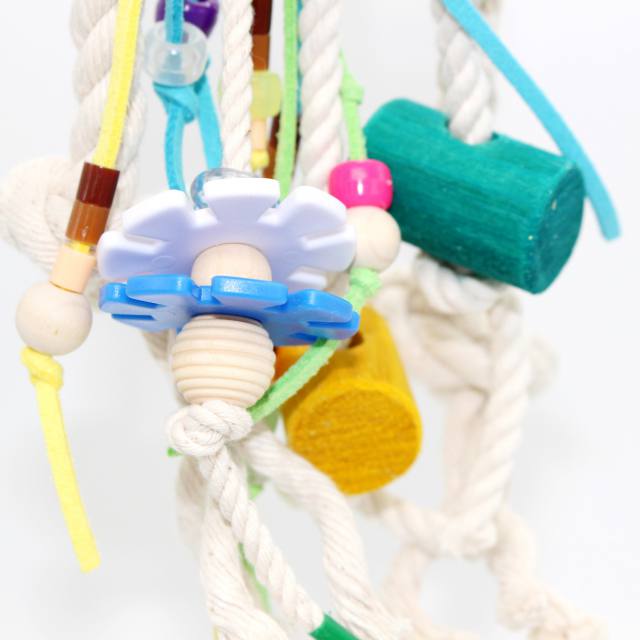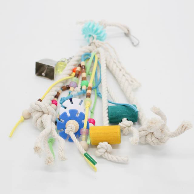 こちらは、紐・ロープ系で遊ぶのが大好きな小型・中型インコさん向けのおもちゃです。