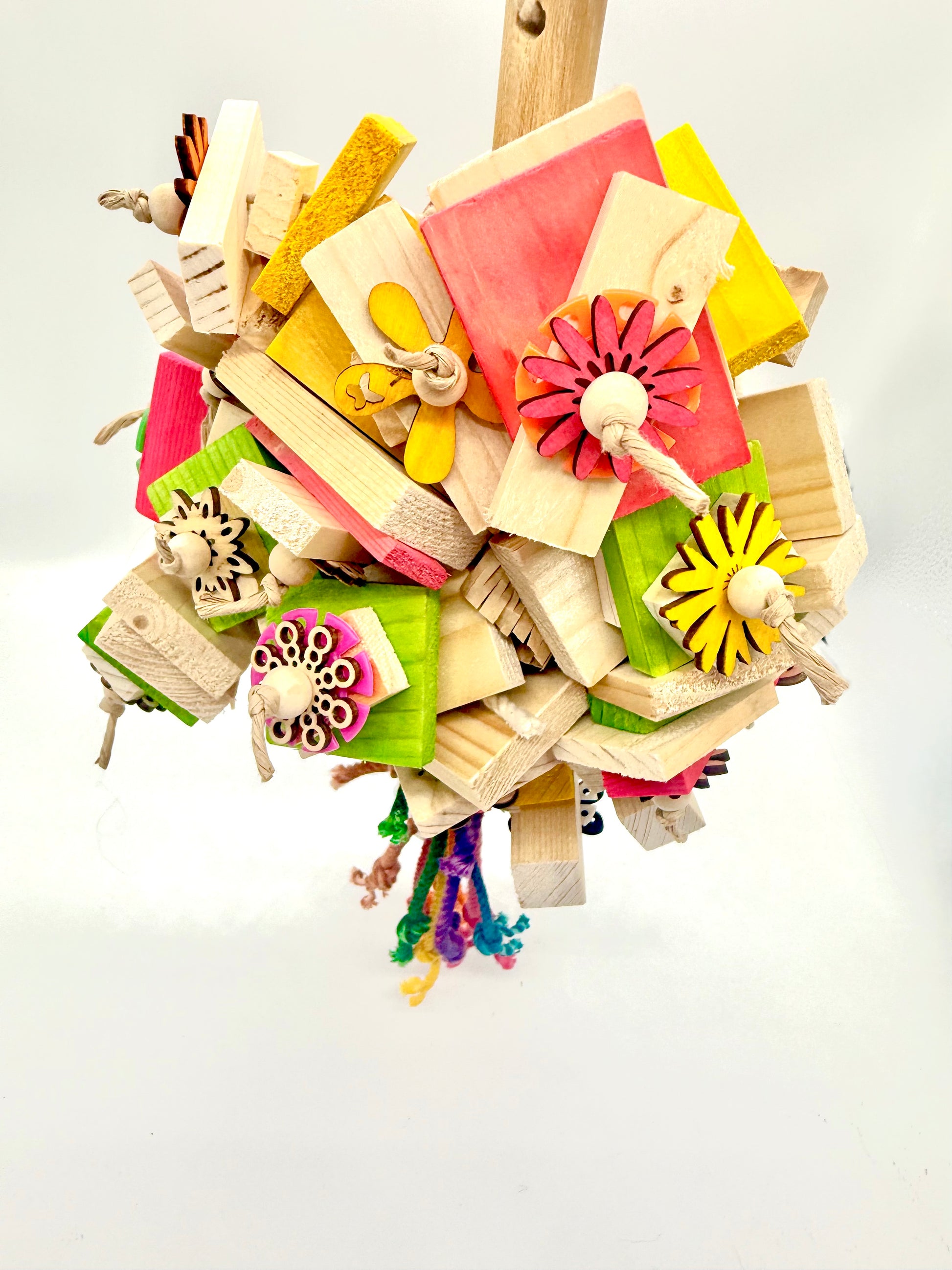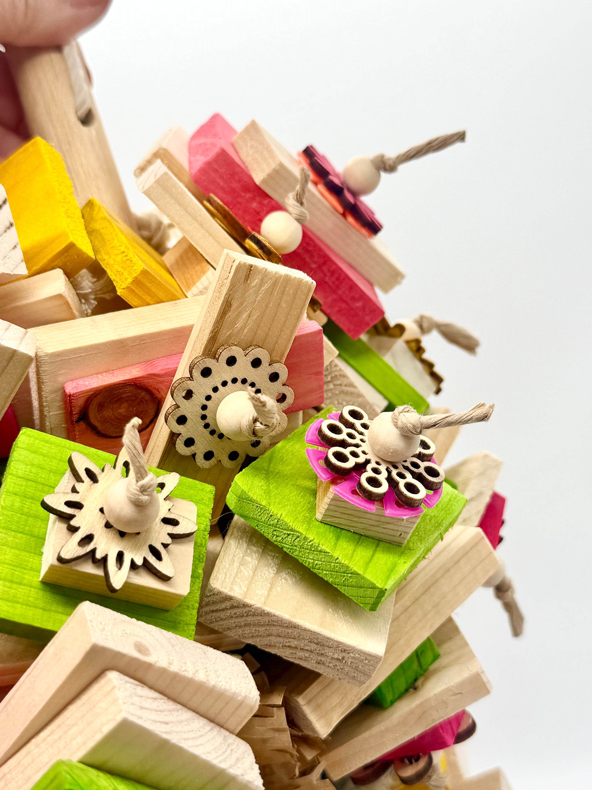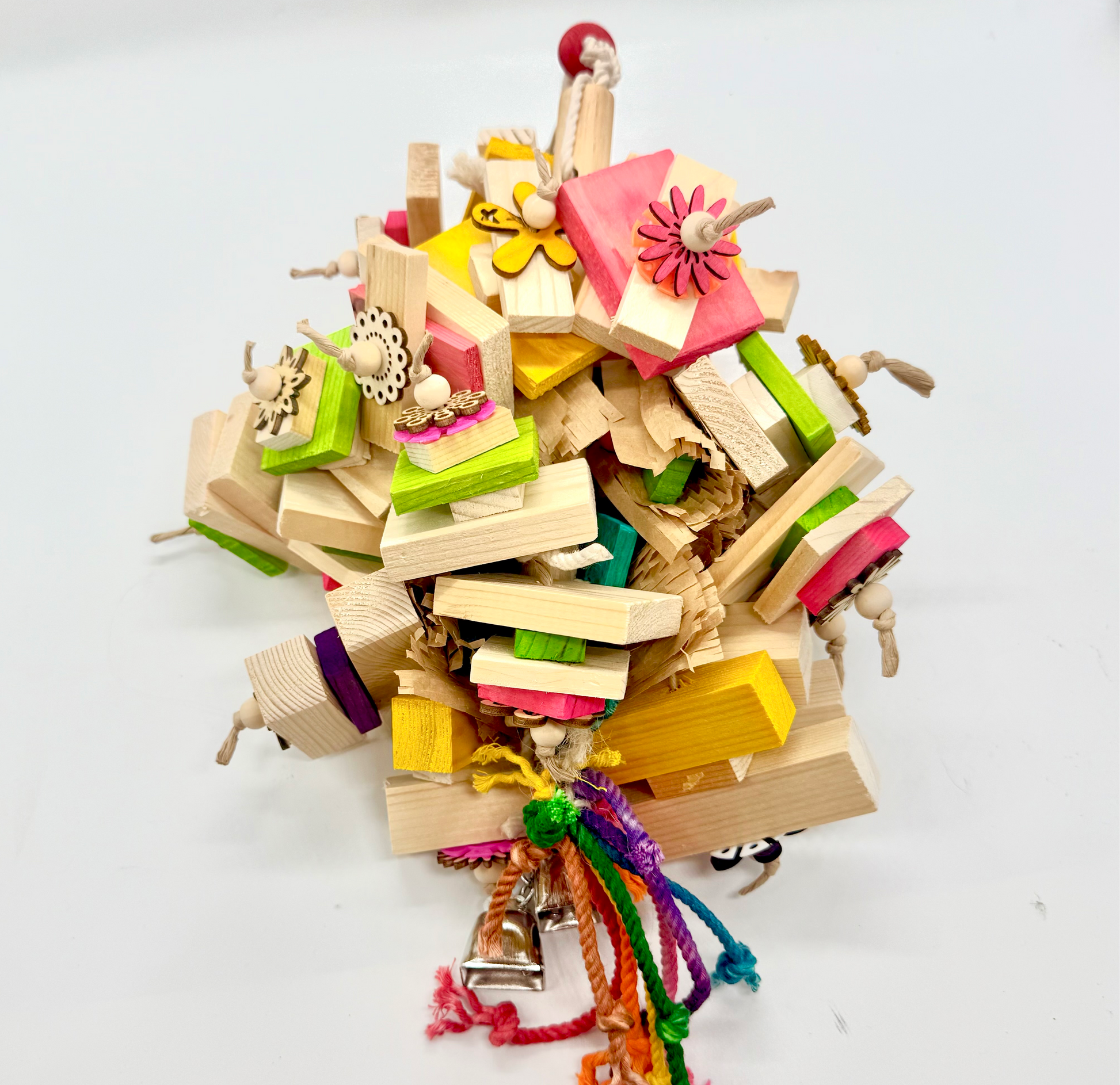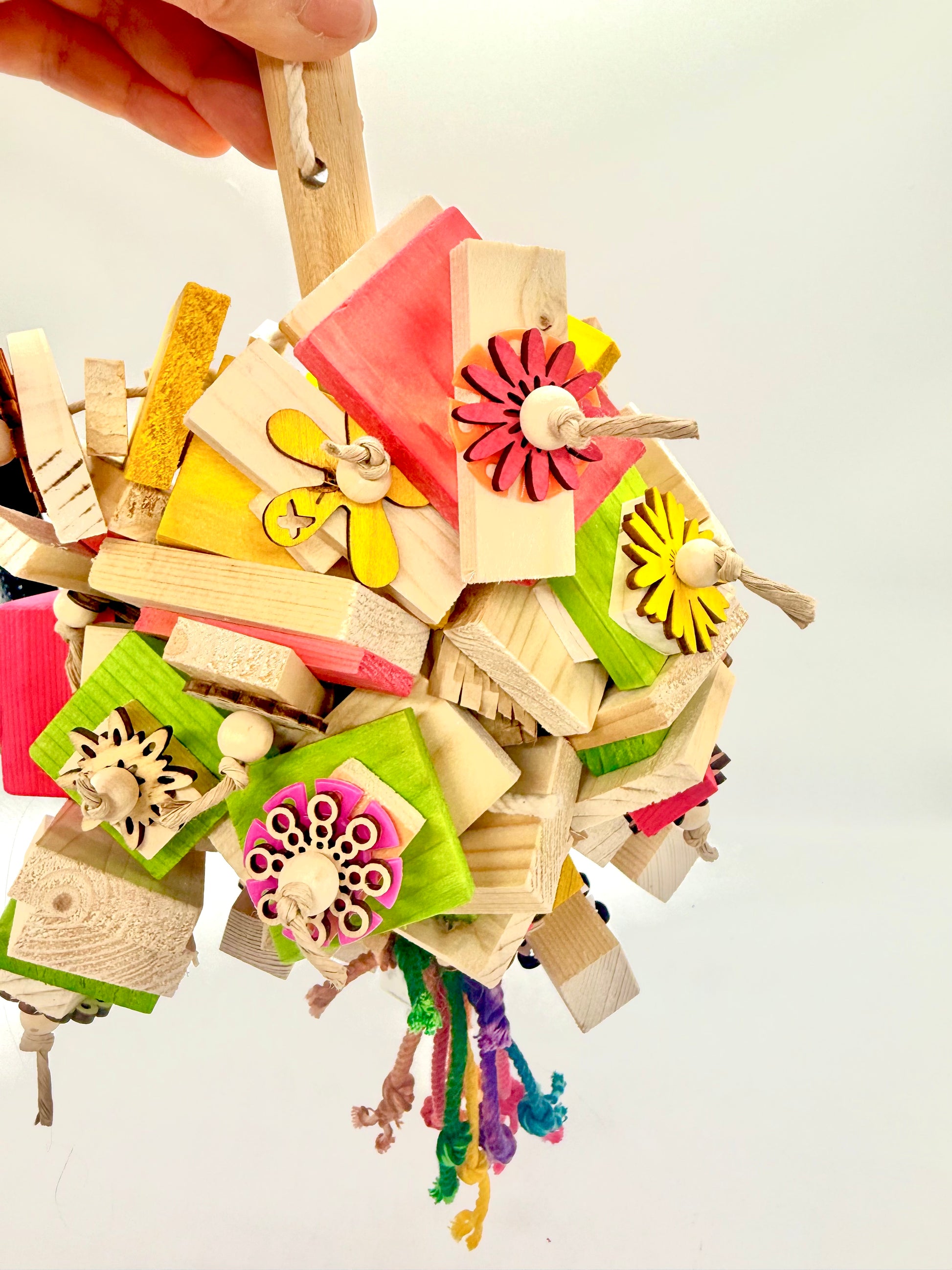 こちらは、ヨウムさん程度の大型インコさん向け、 かじって楽しい破壊系おもちゃです。