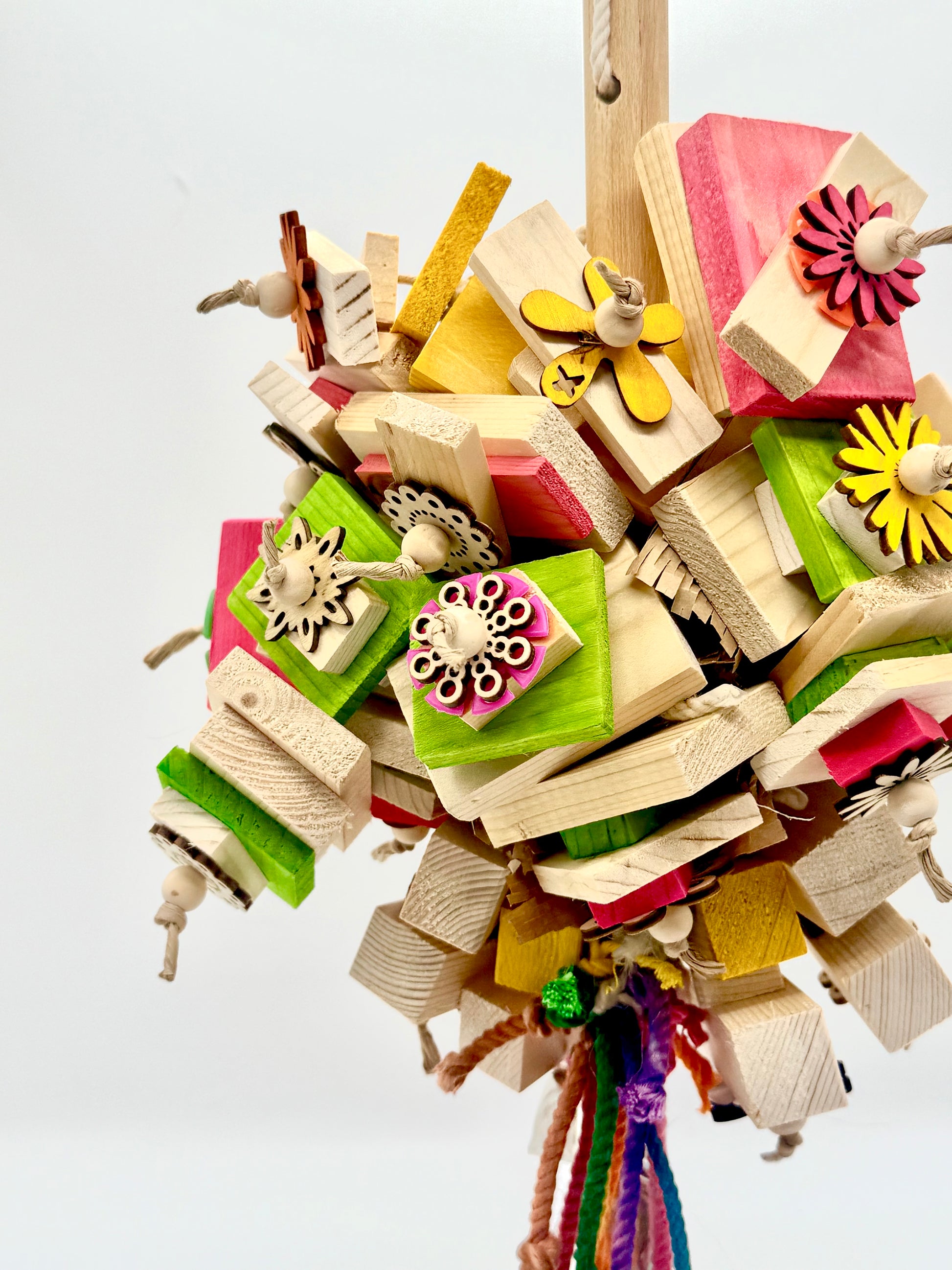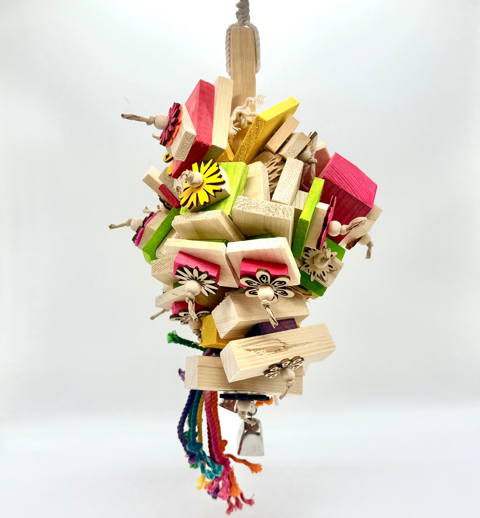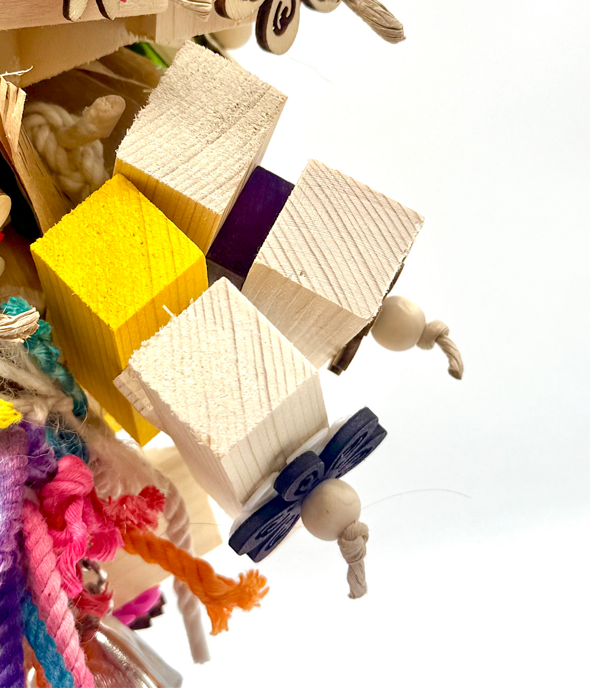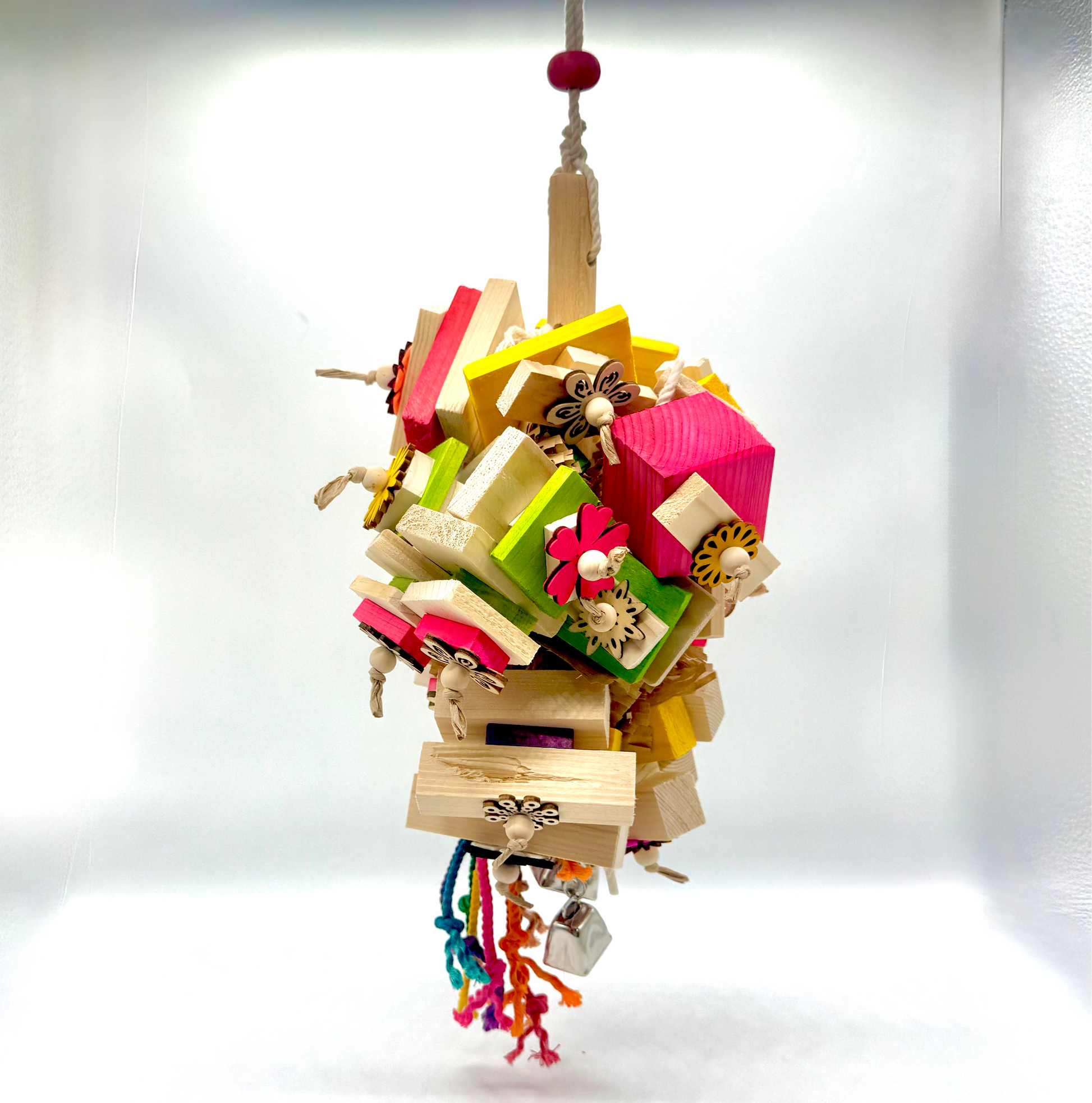 こちらは、ヨウムさん程度の大型インコさん向け、 かじって楽しい破壊系おもちゃです。