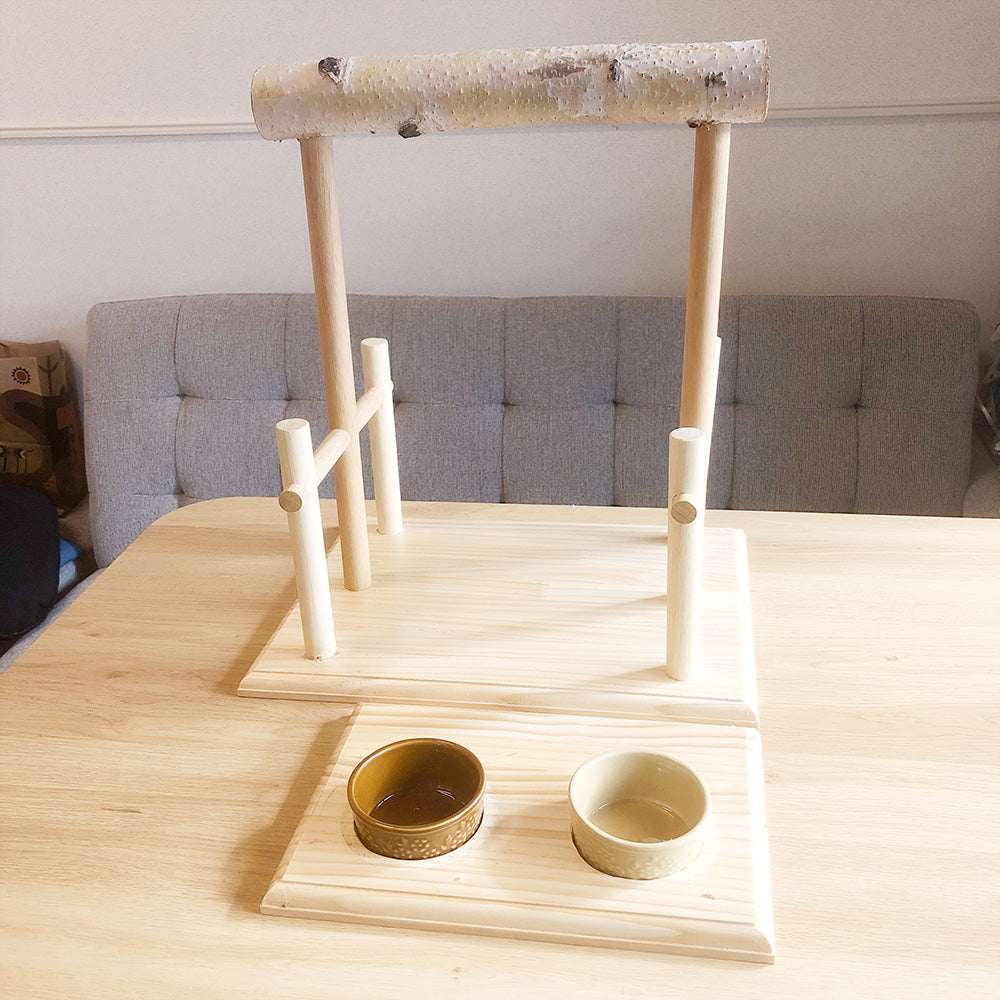 簡易ですが、放鳥時に使えるおやつとお水を飲める台を付属で作りました。
